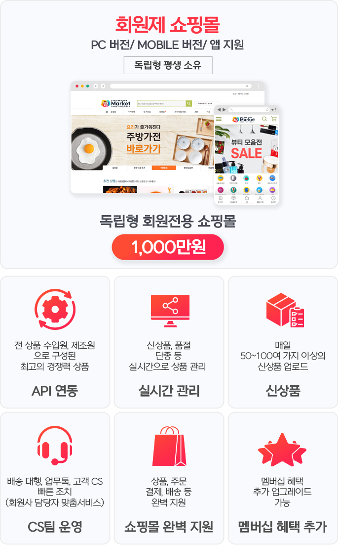회원을 보유하고 있는 기업, 단체, 협회에 연동형 독립몰을 분양(구축)하고 있습니다.