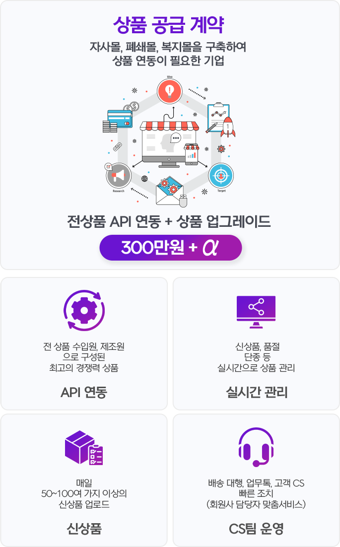 기업이나 단체, 협회등 수요기반(고객 또는 회원)이 있으나 폐쇄몰(복지몰)이 없는 사업자분께 쇼핑몰과 상품을 결합한